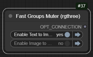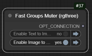워크플로 좌측에 보시면 아래와 같은 [Fast Groups Muter] 노드가 있습니다. 그룹 단위로 실행 여부를 선택할 수 있는 편리한 노드입니다. 먼저 아래쪽에 있는 "Enable Image to Video"을 끄고 실행하면 이미지만 생성됩니다.