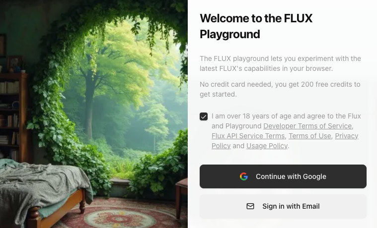 BFL Playground 를 사용하려면 먼저 계정을 생성하여야 합니다.