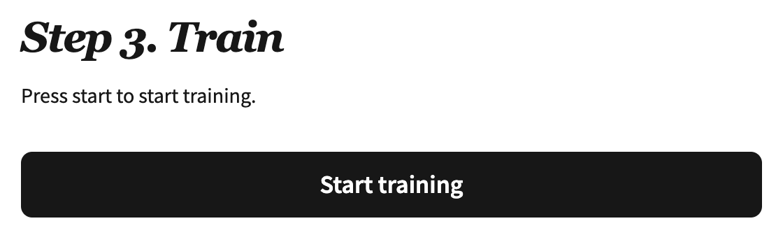 이제 Start training 버튼을 누르면 학습이 시작됩니다. 학습 속도는 PC 의 하드웨어 사양에 따라 달라집니다. 참고로 저는 RTX 3070 8GB 를 사용하고 있는데, 실행시켜보니 메모리가 부족하다고 나오네요. ㅠㅠ