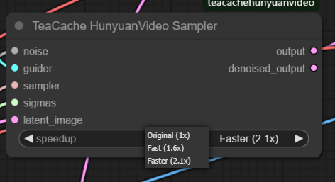 Teacache 는 샘플링을 하는 동안 일부 단계에서 실제 샘플링을 하는 대신 지능적으로 캐시로 대체합니다. 즉, 현재의 입력이 캐시와 비슷할 경우, 캐시로 저장된 출력을 사용하고, 입력이 상당히 다를 때만 캐시를 재 계산하는 방식을 취합니다. 사용자가 임계값을 지정하여 얼마나 캐시를 재계산할지 결정할 수 있습니다. TeaCache: 생성속도를 두배로 글도 읽어보시기 바랍니다.