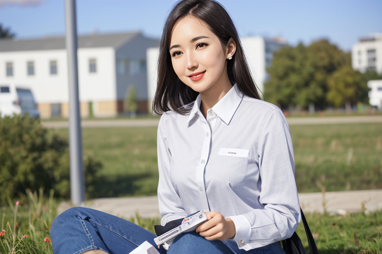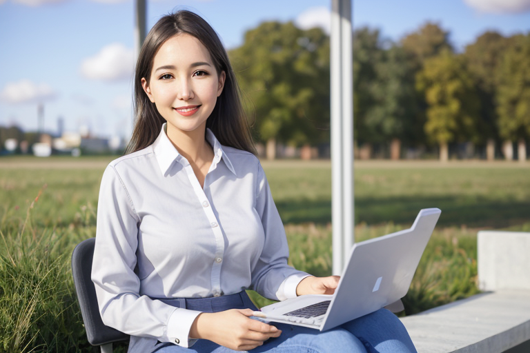 프롬프트: A woman in office, white professional shirt
