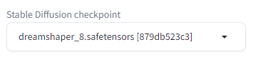 txt2img 페이지에서 Stable Diffusion checkpoint 드롭다운 메뉴에서 dreamshaper_8.safetensors를 선택합니다.