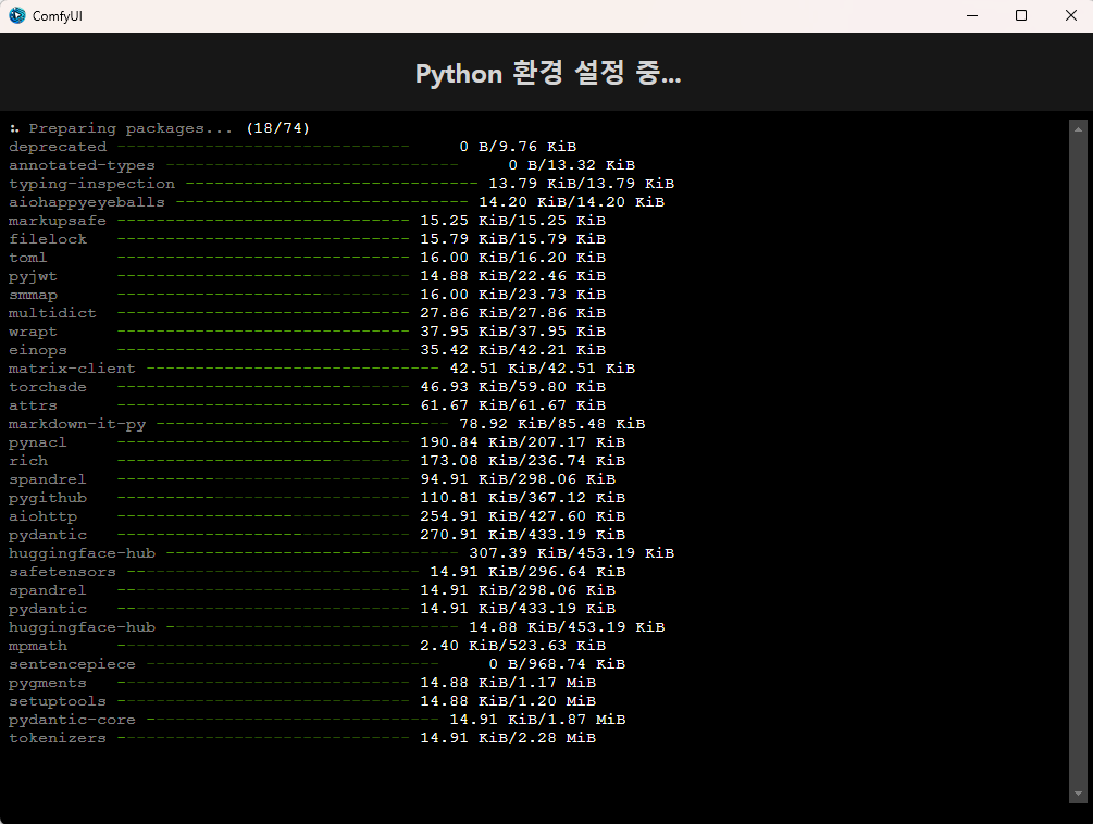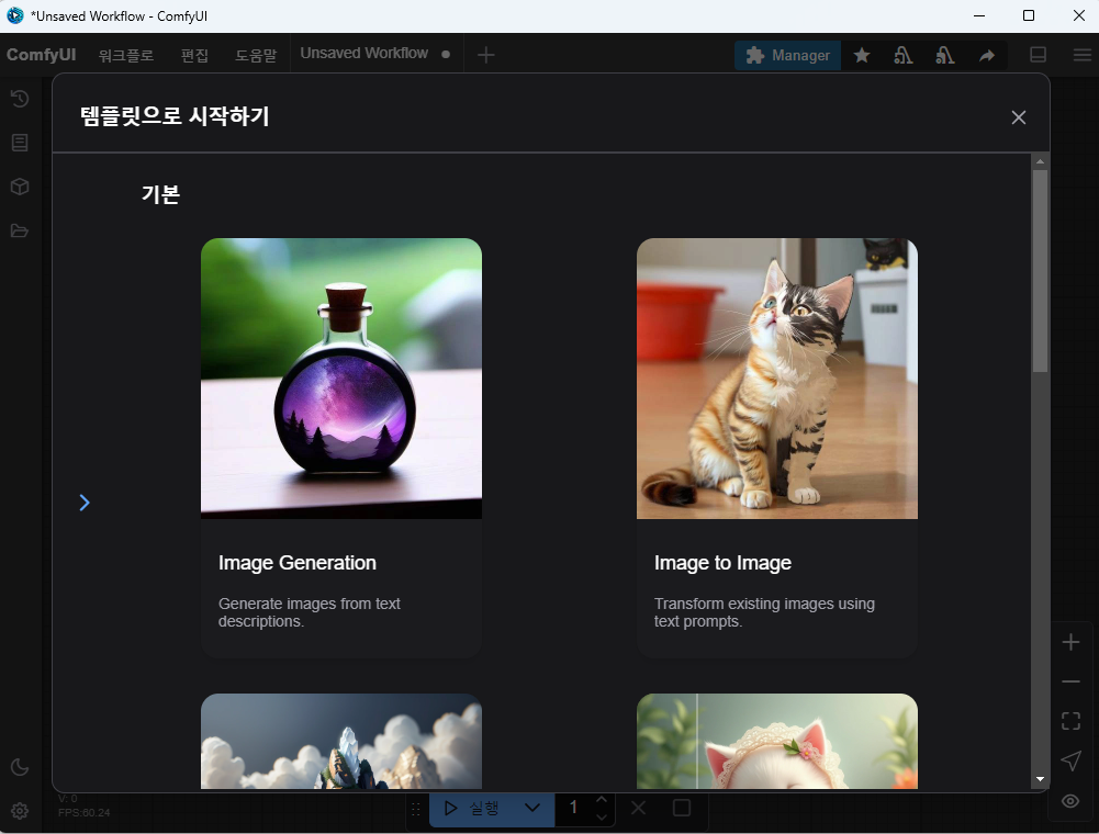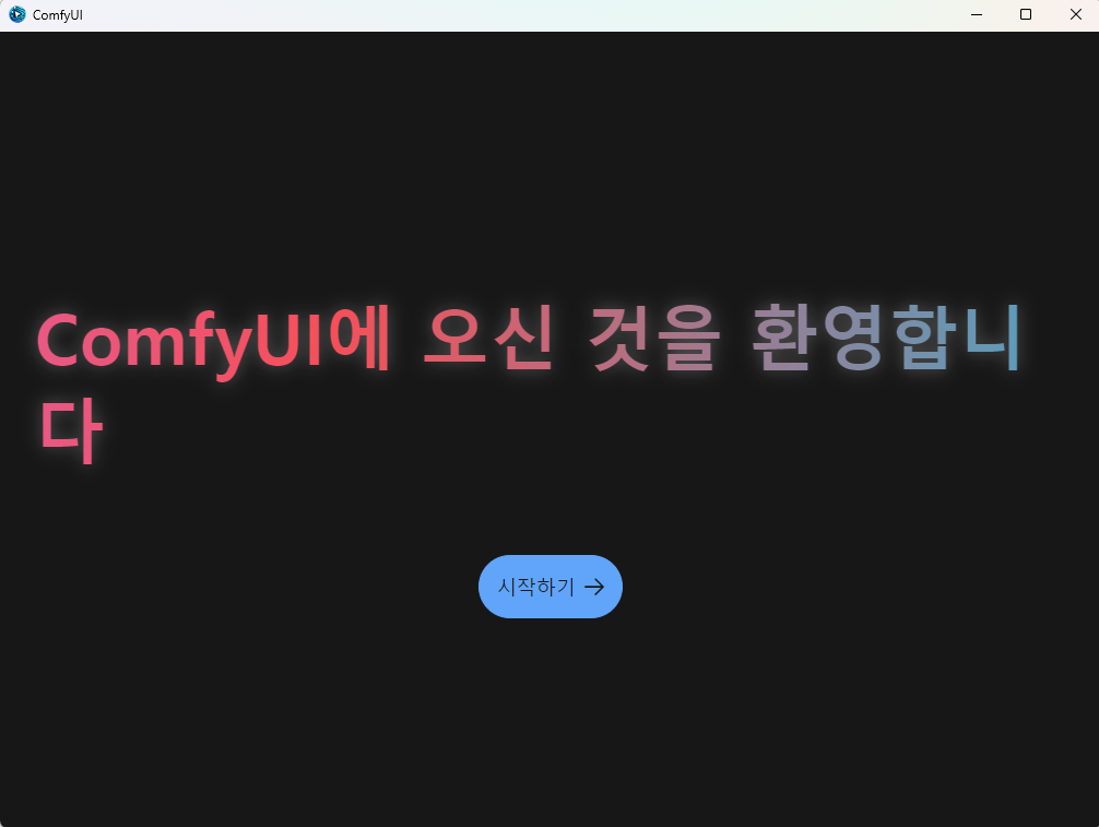 설치가 완려되면 아래와 같이 ComfyUI 화면이 나타납니다.