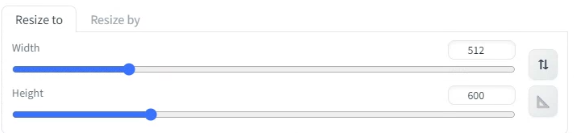 5. 이미지 사이즈를 적절하게 설정합니다. 원본의 크기가 900x1056 이라서 비율에 맞춰 512x600으로 설정했습니다(아래 그림에서 오른쪽 아래에 있는 삼각형 버튼을 누르면 입력된 이미지와 동일한 크기로 설정되는데, 이렇게 해보니 선글라스가 잘 안그려지더군요).
