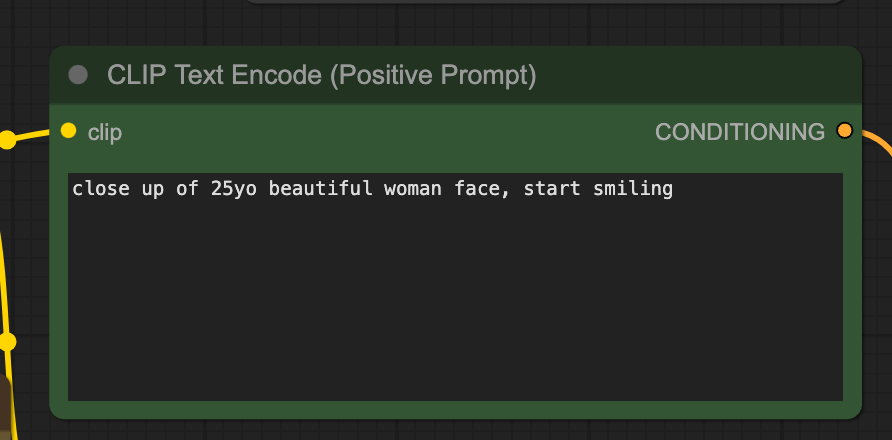 입력 이미지와 어울리고 약간의 움직임을 설명하는 프롬프트가 필요합니다. 여기에서는 웃는 얼굴로 바뀌는 모습으로 설정되어 있습니다.