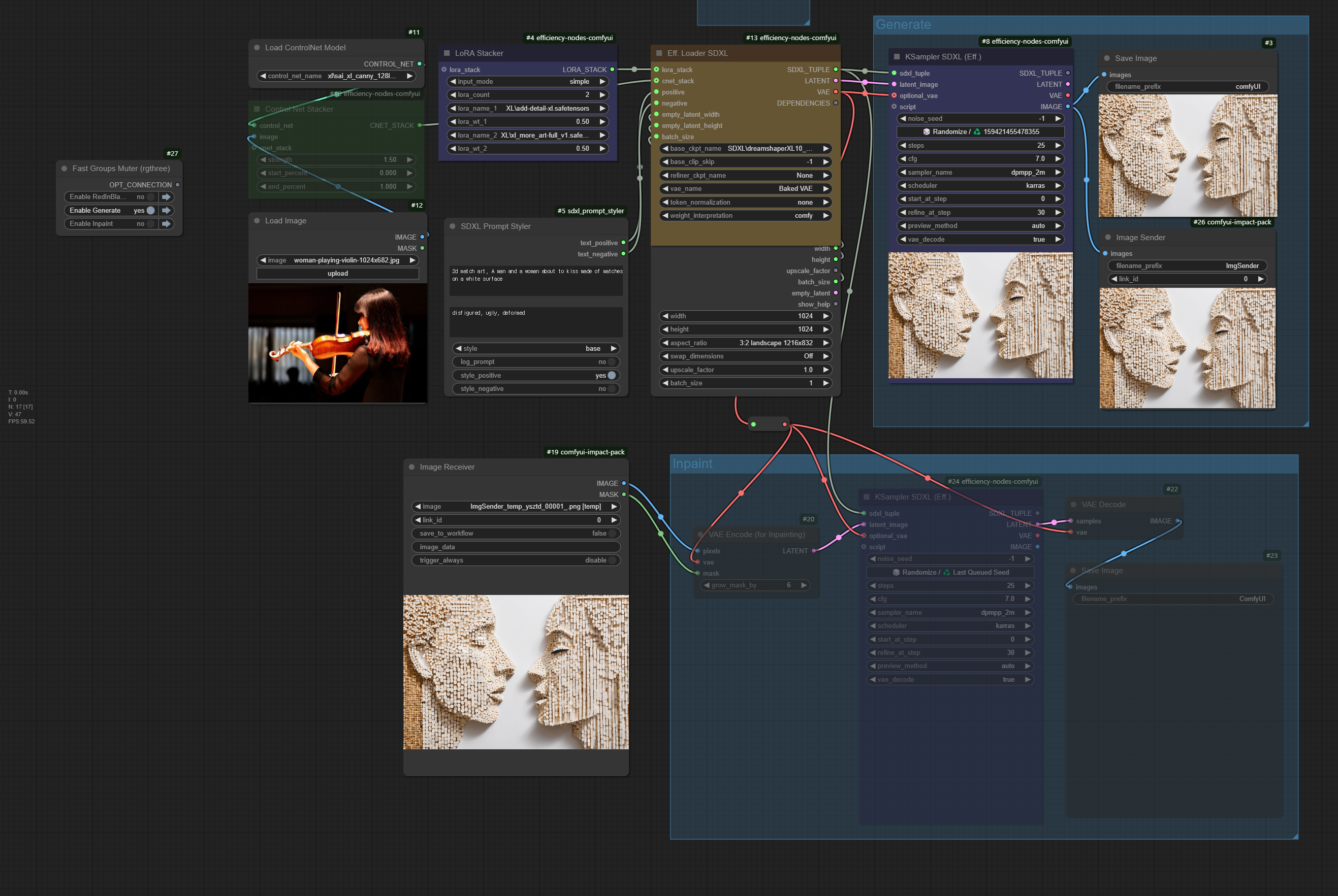 이 워크플로는 SDXL 워크플로를 간단하게 적용할 수 있는 Efficiency Nodes를 사용하여 구성하였습니다.