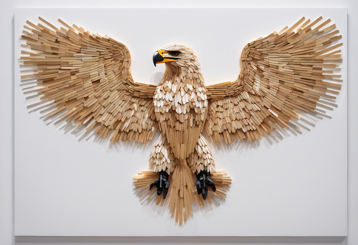 프롬프트: 2d match art, a eagle made of matches and match beads on a white surface