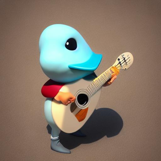 Tiny cute duck playing guitar toy, standing character, soft smooth lighting, soft pastel colors, skottie young, 3d blender render, polycount, modular constructivism, pop surrealism, physically based rendering, square image |