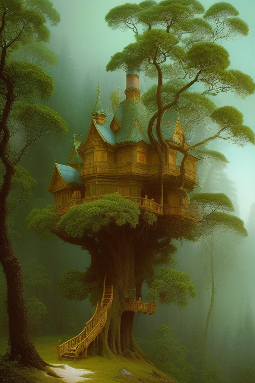 Oil painting of a fantasy treehouse by ivan shishkin and aivazovsky, highly detailed, masterpiece |