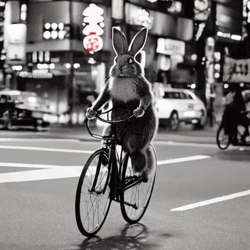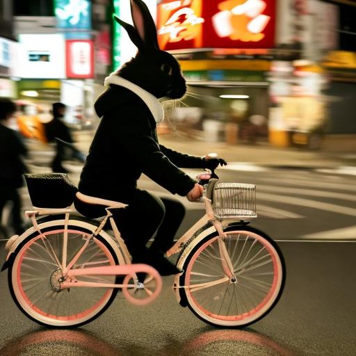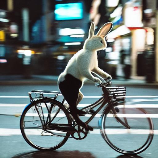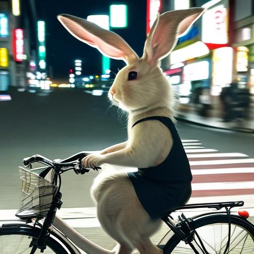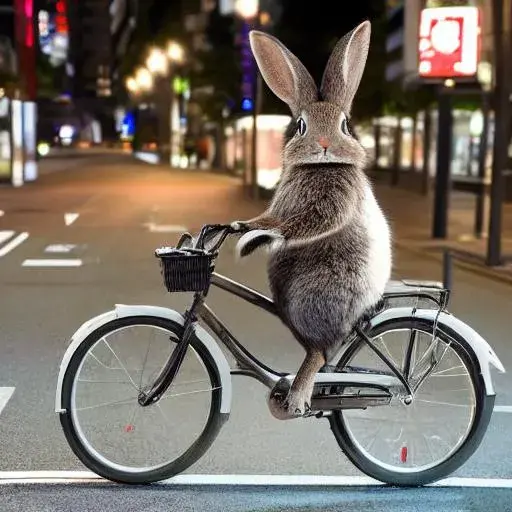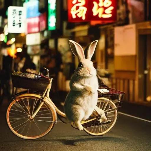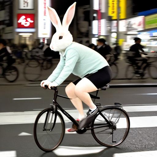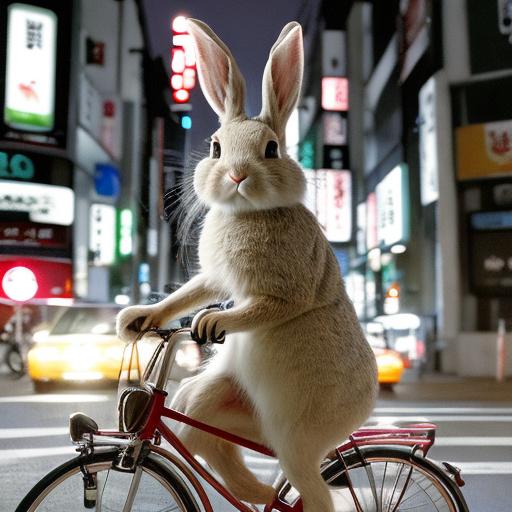 아래는기본 모델(sd-v1-4) 대신 Chilloutmix 로 바꾸서 동일한 프롬프트(photo of a rabbit driving a bicycle, in Tokyo at night)로 그려본 것이다. 씨드는 각각 0, 10, 20, 30이다. 토끼는 잘 표현되었는데, 특히 옷을 입은 토끼로 표현된 것은 Chilloutmix 모델 학습에 영향을 받은 것으로 보인다.