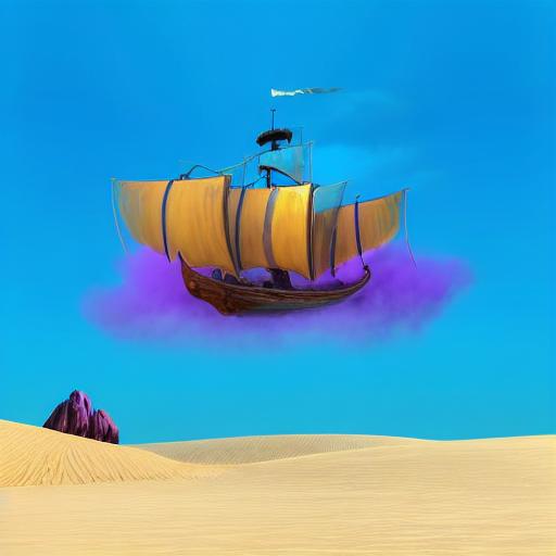 아래는 입력한 그림과 프롬프트"Digital painting of a magical pirates ship floating on a purple mist cloud, over a desert, vibrant colors, 3D pixar render, delicate details, strong sun rays"를 사용해 생성한 그림중 2개만 올린 것이다. 정말 그럴 듯하다. ㅎㅎ