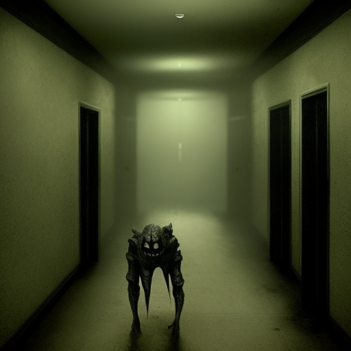 A monster is standing in a dimly lit hallway, terrifying visuals, horror elements, dark ambiance. Seed: 940124883 |
