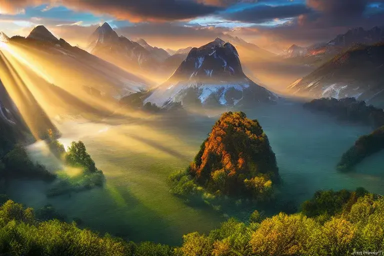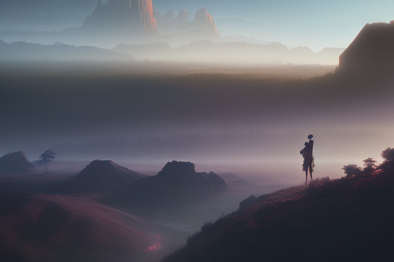a beautiful landscape at dawn by atey ghailan, ismail inceoglu, michal lisowski, artstation, volumetric light, high detail, perfect Seed: 2603509754 |