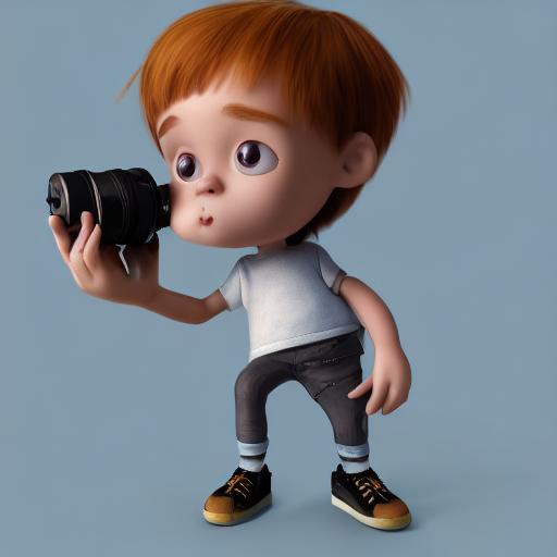 Tiny cute boy holding camera toy, standing character, soft smooth lighting, soft pastel colors, skottie young, 3d blender render, polycount, modular constructivism, pop surrealism, physically based rendering,square image |