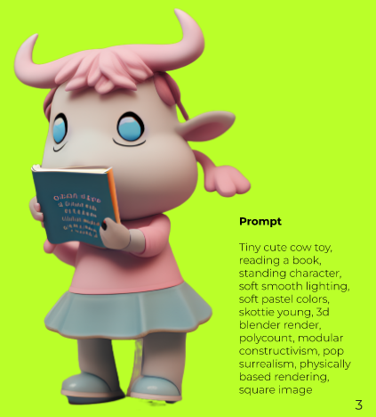Tiny cute cow toy, reading a book, standing character, soft smooth lighting, soft pastel colors, skottie young, 3d blender render, polycount, modular constructivism, pop surrealism, physically based rendering, square image |