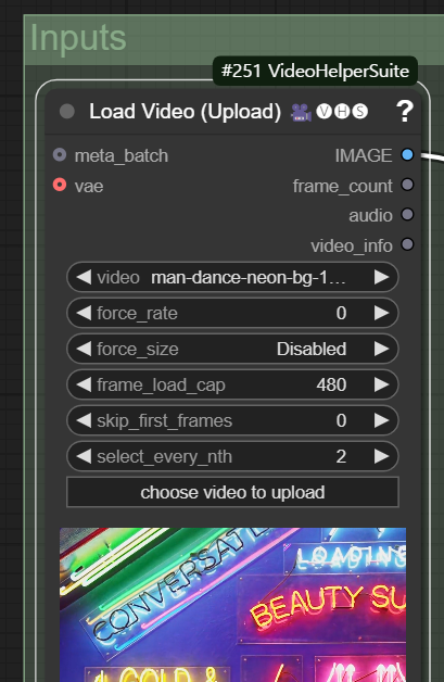 이 비디오를 [Load Video(Upload)] 노드에서 맨아래의 "choose video to upload" 버튼을 눌러 지정합니다.