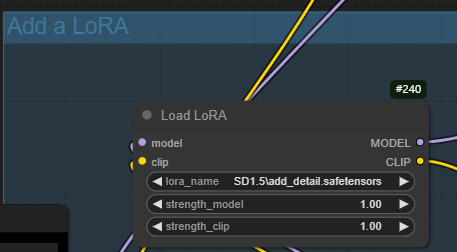 add_detail LoRA를 다운로드 받아 ComfyUI\models\loras 폴더에 넣어줍니다. 이 LoRA를 사용하면 세부 디테일이 향상됩니다. 다운로드가 완료되면 화면을 새로고침하신 후 [Load LoRA] 노드에서 이 모델을 지정합니다.
