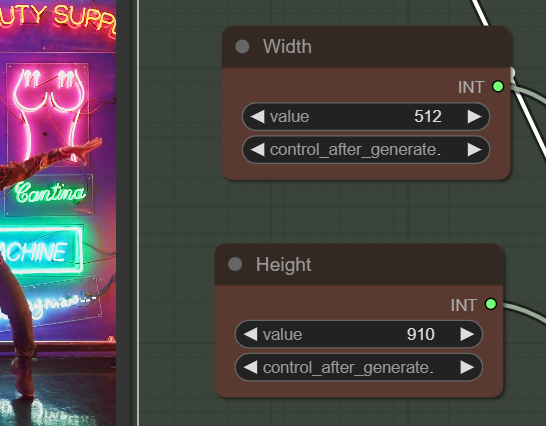 생성할 비디오의 width와 height는 원 비디오의 종횡비(aspect ratio) 와 비슷해야 합니다. 좁은 쪽(여기서는 가로)를 체크포인트 모델의 해상도(SD1.5의 경우 512)의 0.5에서 1.5배로 설정하는 것이 좋습니다. 원 비디오가 1080x1920이므로, 가로를 512로 설정하면 세로는 512*1920/1080 = 910으로 설정합니다.