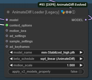 AnimateDiff 는 프레임간의 일관성을 향상시키는데 사용합니다. 여러가지 새로운 종류의 AnimateDiff 모델이 나왔지만, 이 워크플로에서는 예전 모델이 잘 작동하다는 것을 발견했습니다. 아래는 AnimateDiff 모델 테스트중 알아낸 사실들입니다.