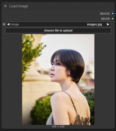 아래와 같이 [Load Image] 노드에 원하는 이미지를 불러옵니다. 이 워크플로에서 사용하는 SDXL Hoko Manga Style LoRA 모델은 여성 1인 용이기 때문에 여성이 포함된 이미지를 사용하는 것이 좋습니다. 필요하시면 아래 파일을 사용하셔도 됩니다.
