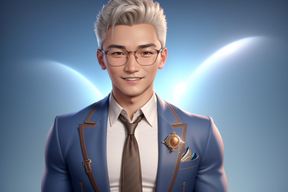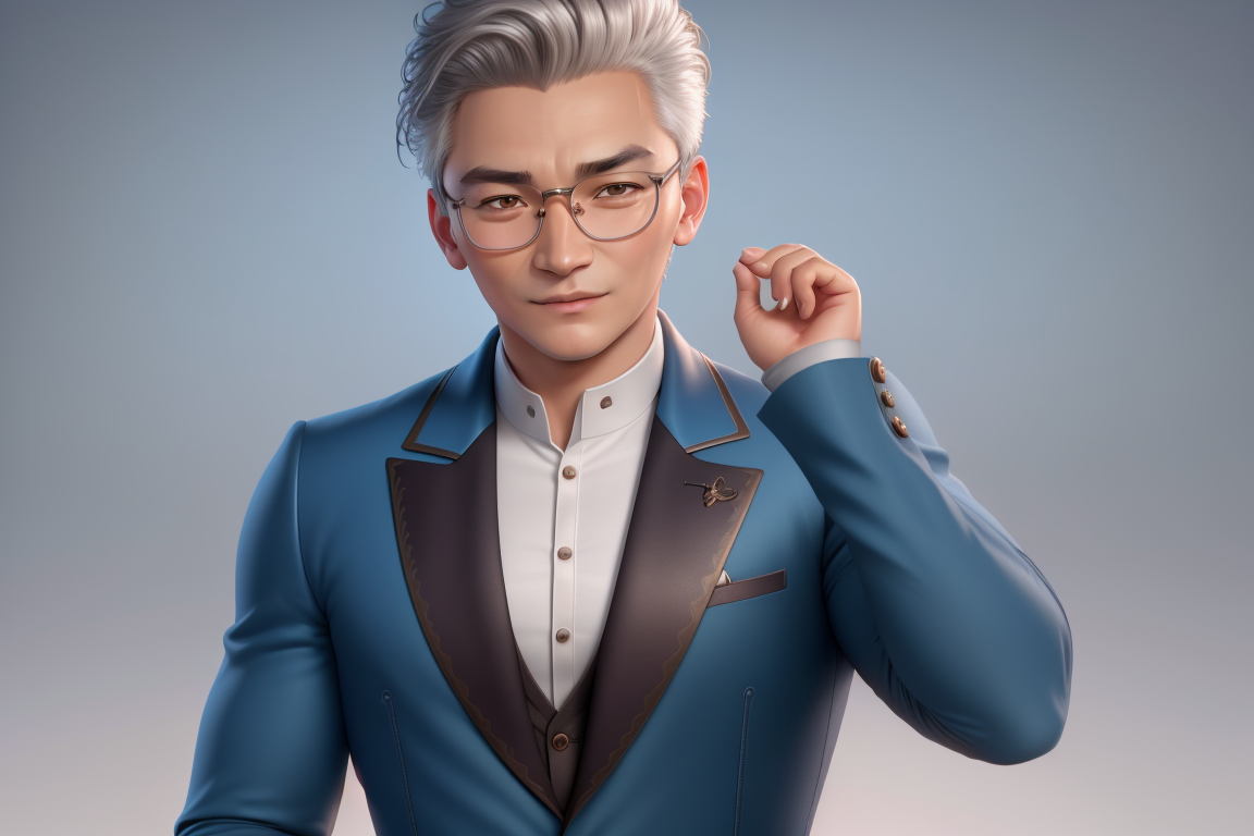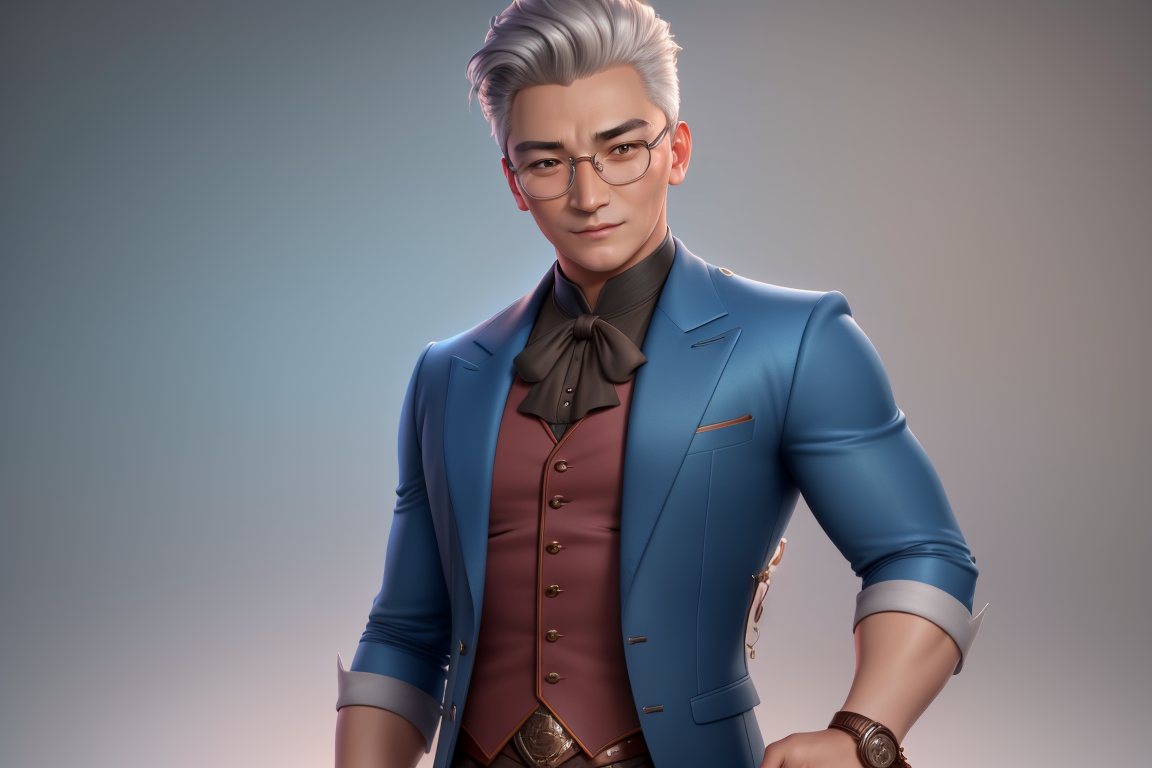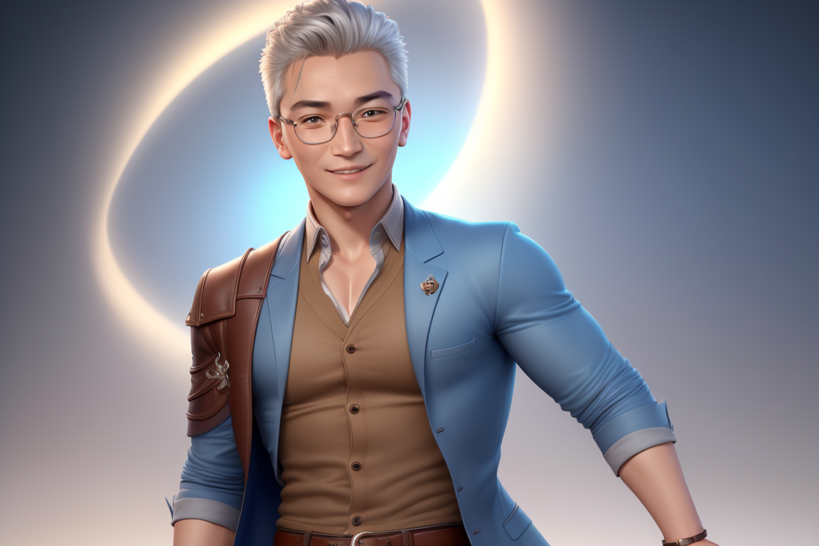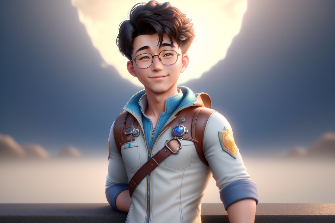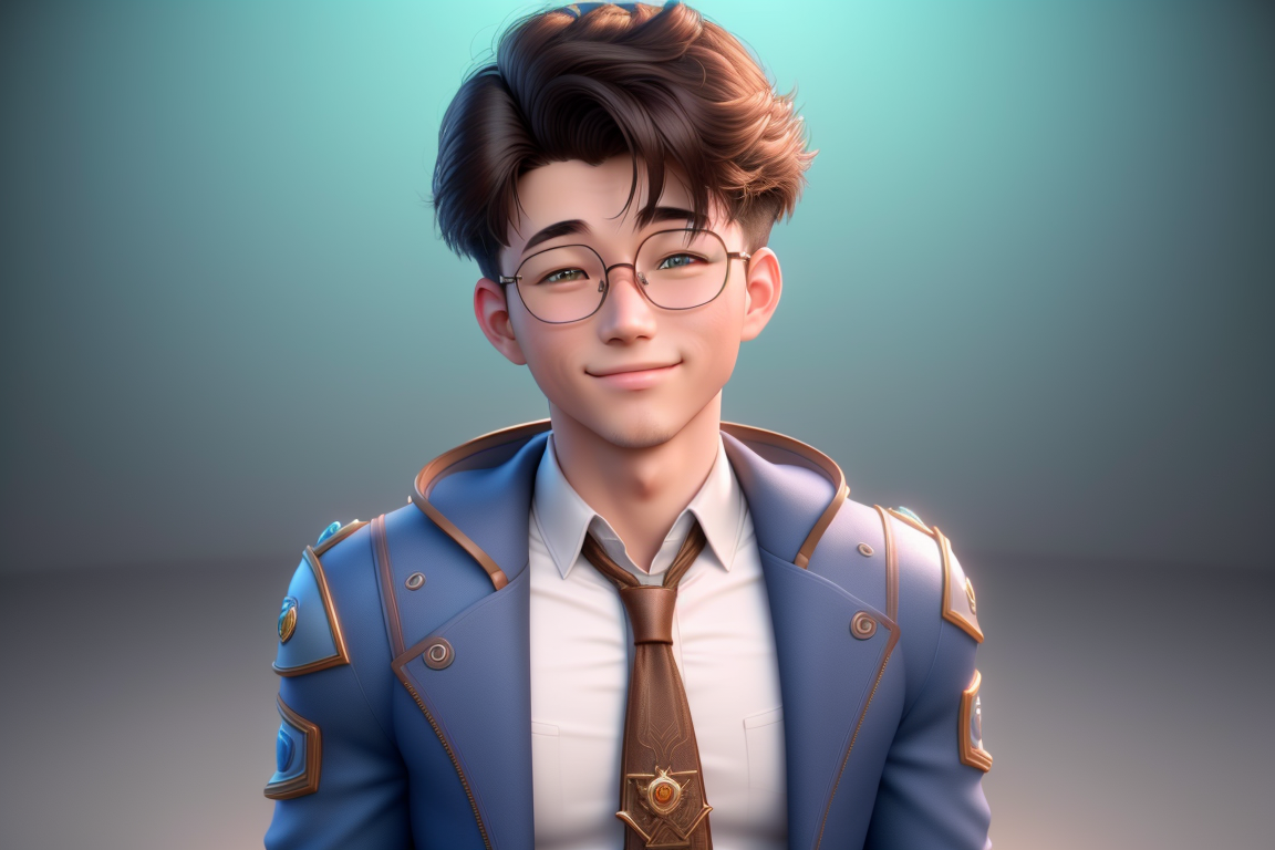 프롬프트: ((best quality)), ((masterpiece)), (detailed) a young man,glasses, Pixar protagonist, Disney Villain Character, best quality, cute 3D avatar,8k, Despicable laughter, simple background, super detail
