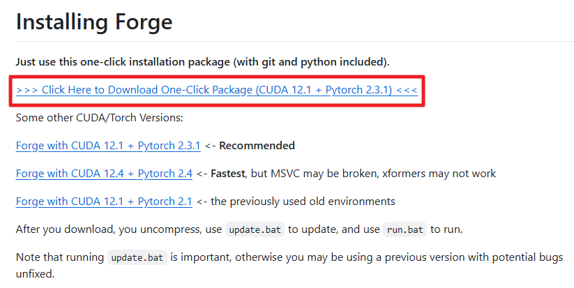 SD Forge를 설치하기 가장 쉬운 방법은 설치 패키지를 사용하는 방법입니다.