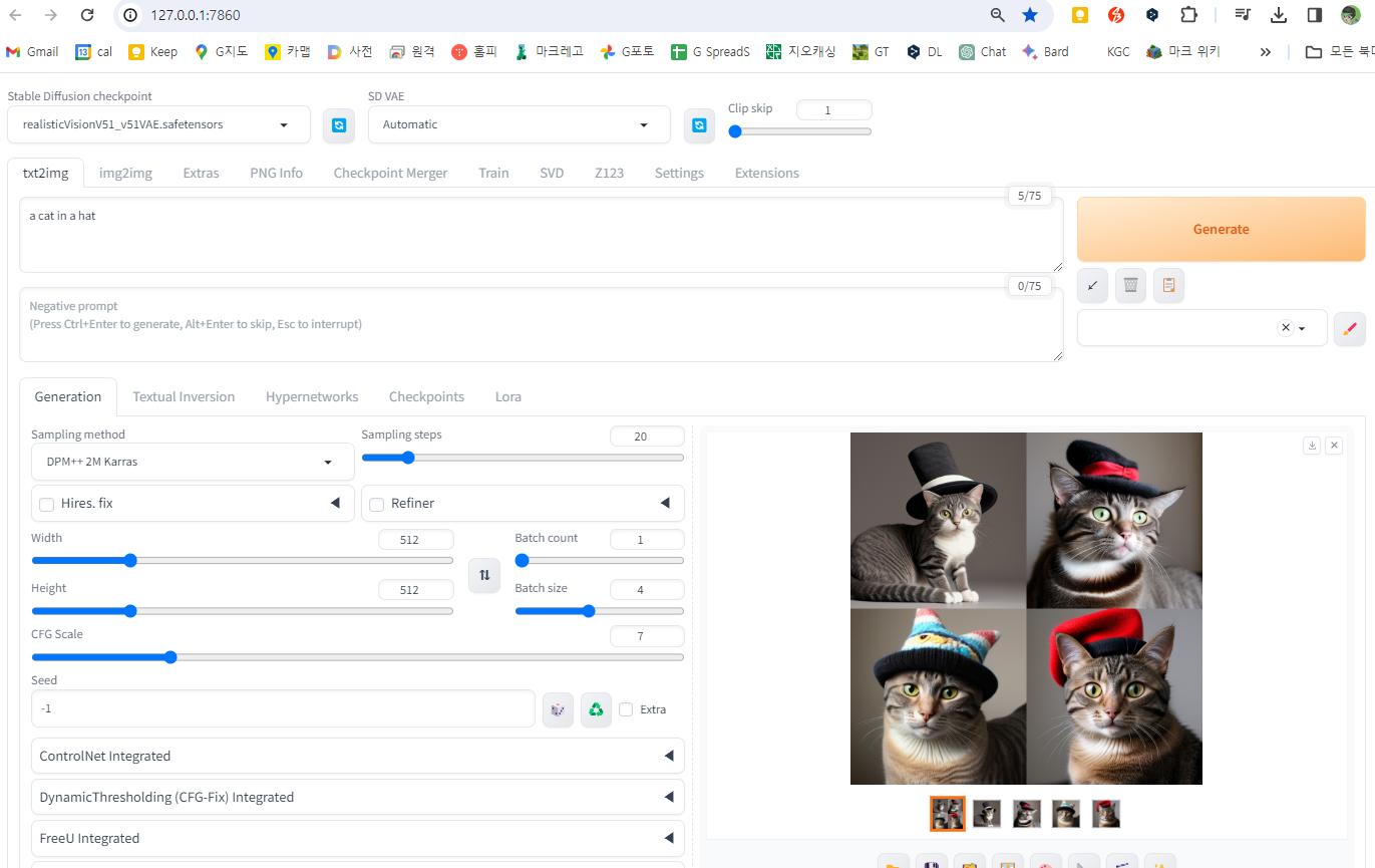 아래는 SD Forge를 실행시켜본 모습입니다. 보시는 것처럼 형태는 거의 AUTOMATIC1111과 유사합니다. 그냥 AUTOMATIC1111 사용법 그대로 사용할 수 있을 것 같네요.