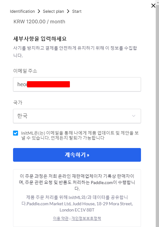 그래서 그냥 가입해 보기로 했습니다. 1년에 8만2천원... 1개월에 6900원이면 커피 두잔 정도? 물론 충분히 감수할 만한 금액입니다만, 매일 쓸 것도 아닌데... 좀 아깝다 싶네요. 그런데 그 아래쪽에는 1개월에 1200원. 아마도 1개월은 특별 할인이 적용되나 봅니다. 뭐... 테스트용이니까 1개월이면 충분하다 싶어 가입하기로 했습니다.