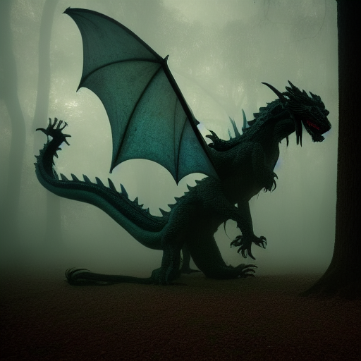 프롬프트 : a giant monster hybrid of dragon and spider, in dark dense foggy forest