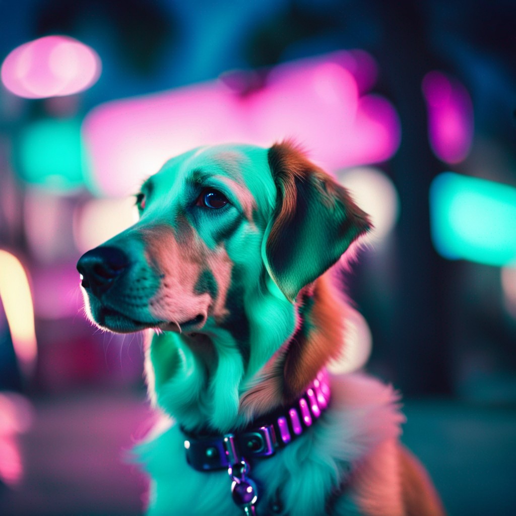 아래는 생성된 결과입니다. 한 4-5분 정도 걸린 것 같네요. 프롬프트는 "Shot of Vaporwave fashion dog in miami" 입니다. vaporwave는 전자음악 서브장르인가본데, 이미지로 검색해보면 아래처럼 연보라 쪽 형광색을 기본으로 하는 이미지 쪽인 것 같네요.