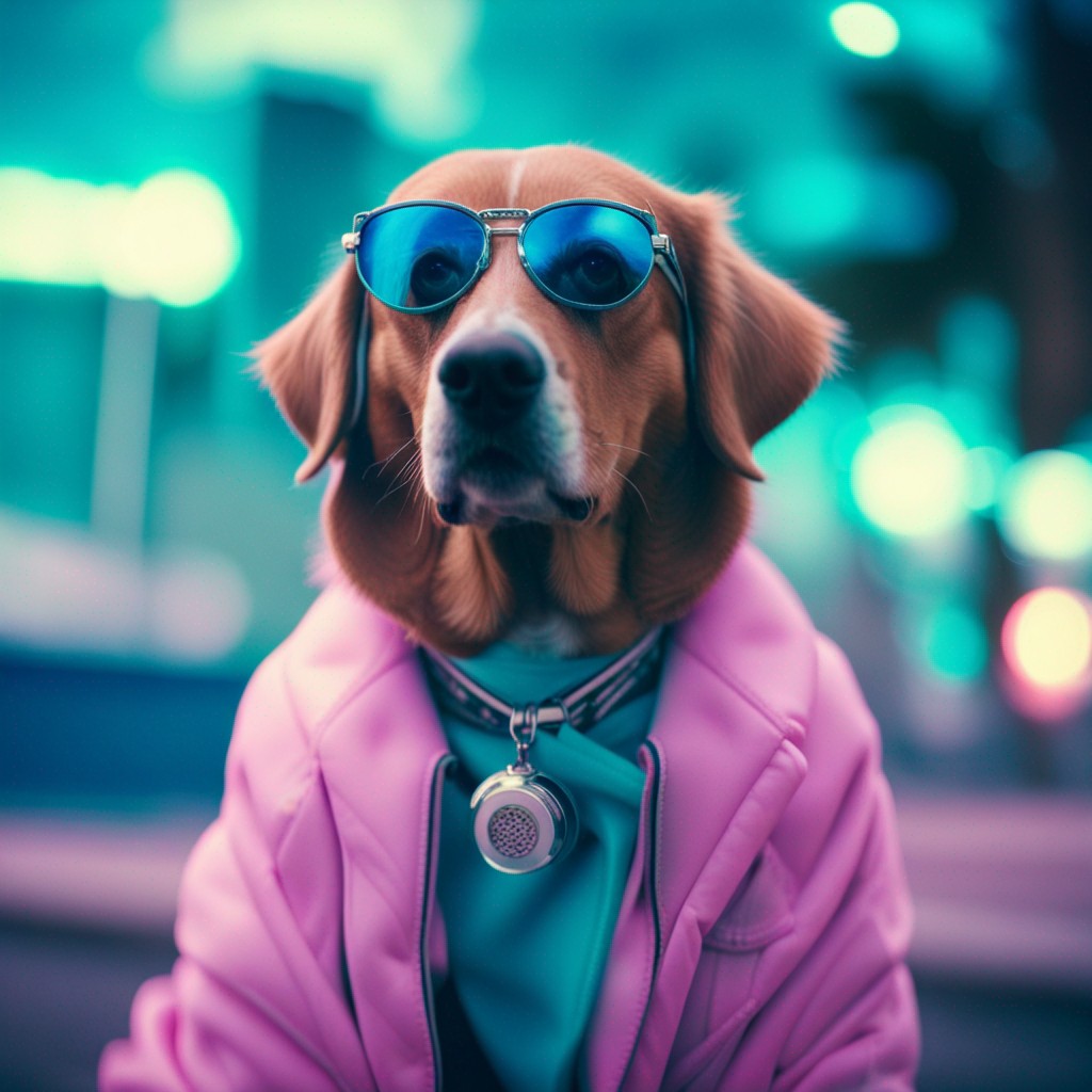아래는 생성된 결과입니다. 한 4-5분 정도 걸린 것 같네요. 프롬프트는 "Shot of Vaporwave fashion dog in miami" 입니다. vaporwave는 전자음악 서브장르인가본데, 이미지로 검색해보면 아래처럼 연보라 쪽 형광색을 기본으로 하는 이미지 쪽인 것 같네요.