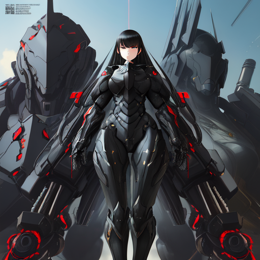 프롬프트: a woman with black armored uniform, futuristic, giant robot, inspired by Krenz Cushart, neoism, kawacy, wlop, gits anime