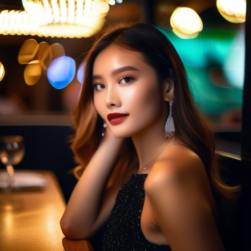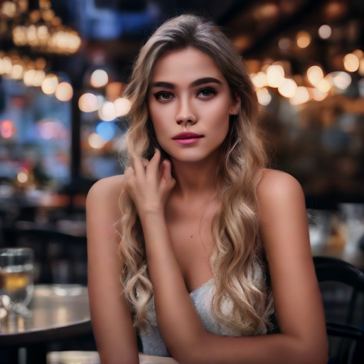 프롬프트: photo of young woman, highlight hair, sitting outside restaurant, wearing dress, rim lighting, studio lighting, looking at the camera, dslr, ultra quality, sharp focus, tack sharp, dof, film grain, Fujifilm XT3, crystal clear, 8K UHD, highly detailed glossy eyes, high detailed skin, skin pores
