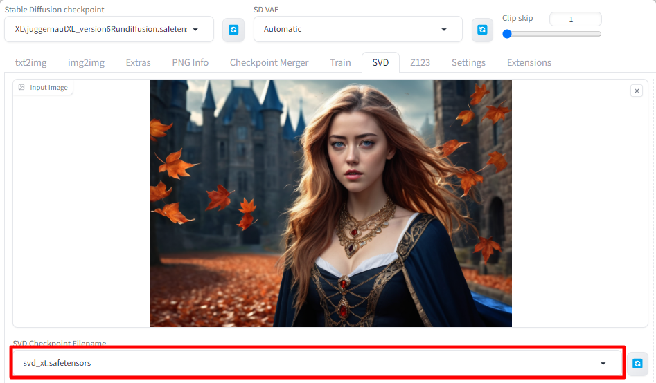 SVD로 비디오를 생성하기 위해서는 기본 이미지를 가져와야 합니다. 물론 자신의 사진이나 인터넷에서 가져와도 되는데, 저는 먼저 txt2img로 이미지를 생성하고, 이 이미지를 비디오로 만드는 방법을 사용하겠습니다.