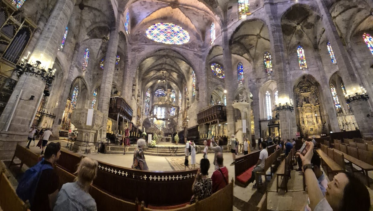 이 성당은 라 세우(La Seu)라고도 하는데, 13세기에 기존의 무슬림 사원을 허물고 그 위에 지은 성당이라고 합니다. 1903년부터 가우디가 복원작업에 참여했다고 합니다. 지름이 약 14m에 달하는 장미창은 현존하는 고딕 양식 장미창 중 두 번째로 크다고 하네요.