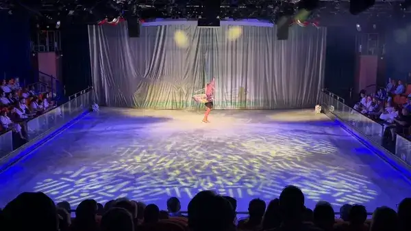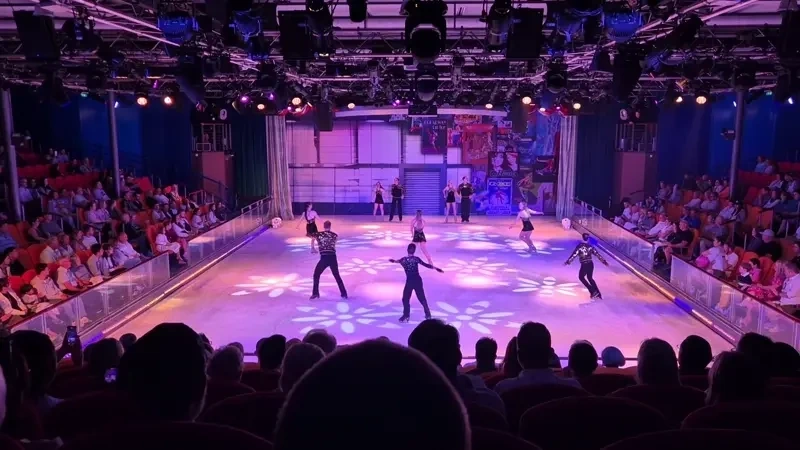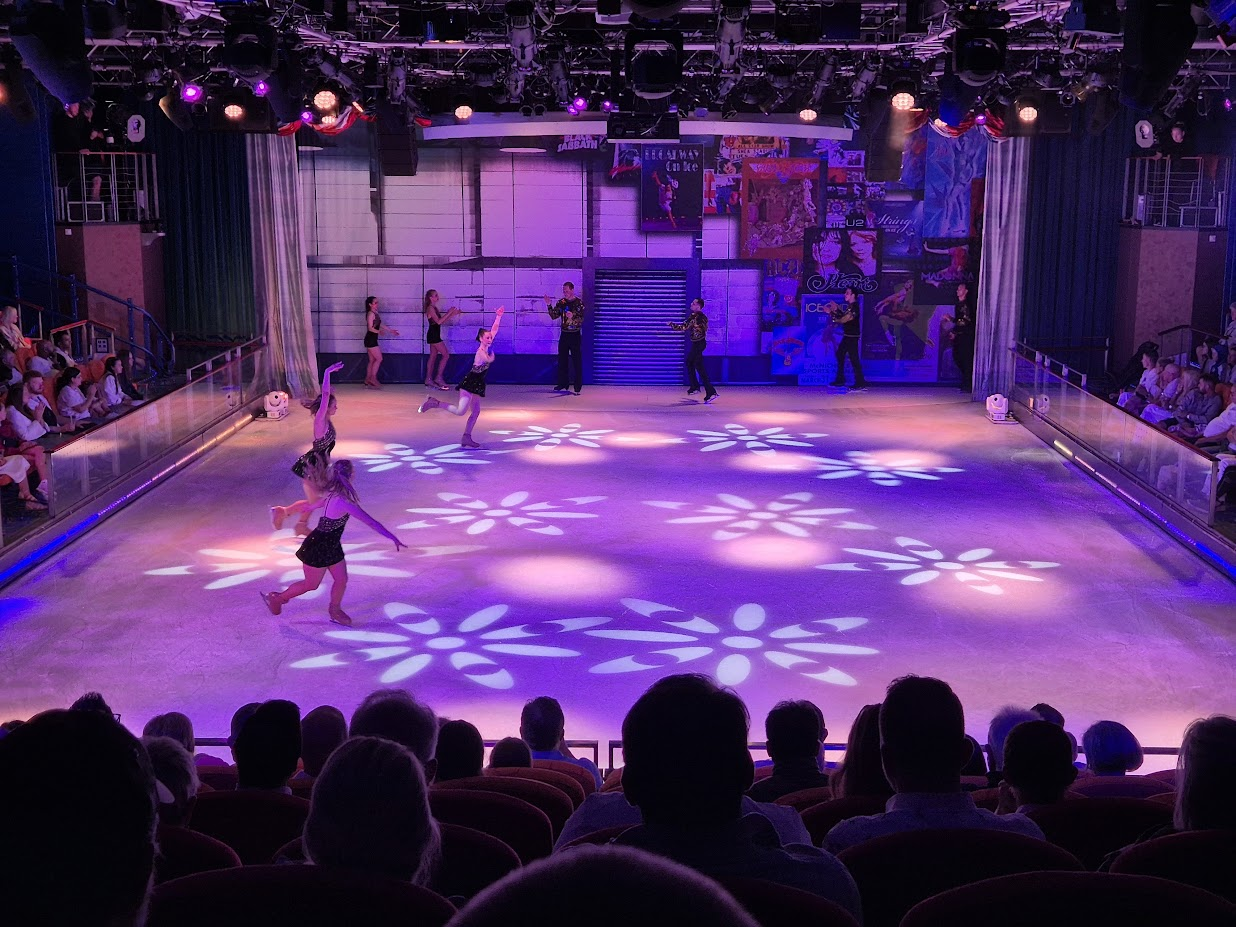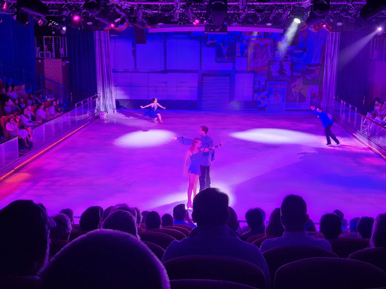 돌아와 저녁을 먹은 후, 아이스링크 공연을 보러갔습니다. 세상에나 역시 크루즈는 큰 배를 타야하는 것 같네요. 7만톤 급 크루즈에서는 공연장이 극장 하나 뿐이었는데, 여기는 여러가지 공연장이 있어 좋았습니다. 덕분에 아이스링크 직관은 처음이네요.