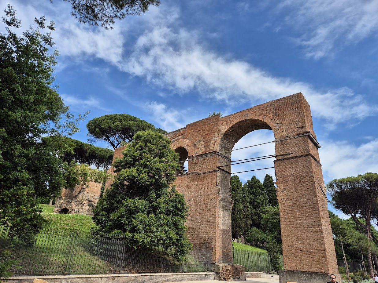 콜로세움 쪽으로 걸어가니 수도교 유적이 보이네요. 오른쪽의 문은 콜로세움 바로 곁에 있는 콘스탄티누스 대제의 개선문입니다.