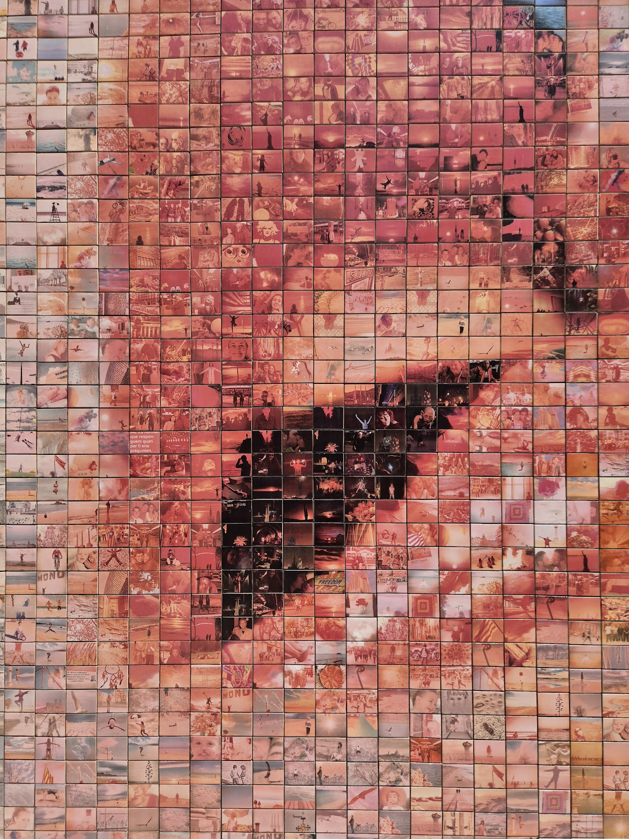 멀리서 보면 남녀의 키스하는 모습이지만, 접근해 가면 아주 많은 사진들의 모자이크임을 알 수 있습니다.