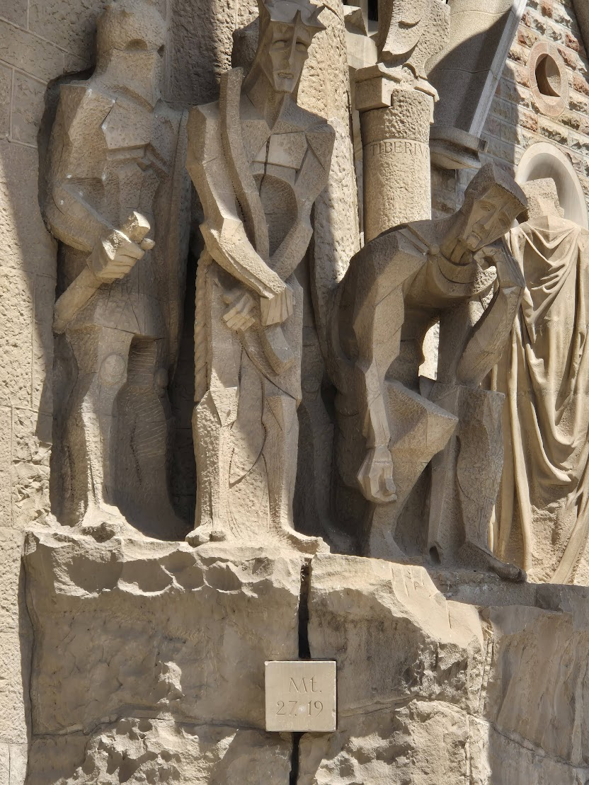 보시는 것처럼 수난 파사드는 직선이 많은데, 스페인의 현대 조각가중 한 분인 호세 마리아 수비라치라는 분이 조각하셨다고 합니다. 이 분은 다음 날 방문한 몬세라트 수도원에도 작품이 하나 있습니다.