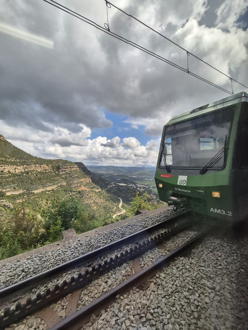 몬세라트 수도원은 아주 험준한 몬세라트 산에 위치합니다. 그래서 일반 기차를 타고 골짜기에 있는 역까지 가고, 거기서 산악 열차로 갈아타고 올라가게 됩니다. 아래 우측 사진에서 열차 궤도를 보시면 가운데 톱니바퀴가 있는데, 이것을 사용해서 급한 경사를 밀고 올라가는 겁니다.