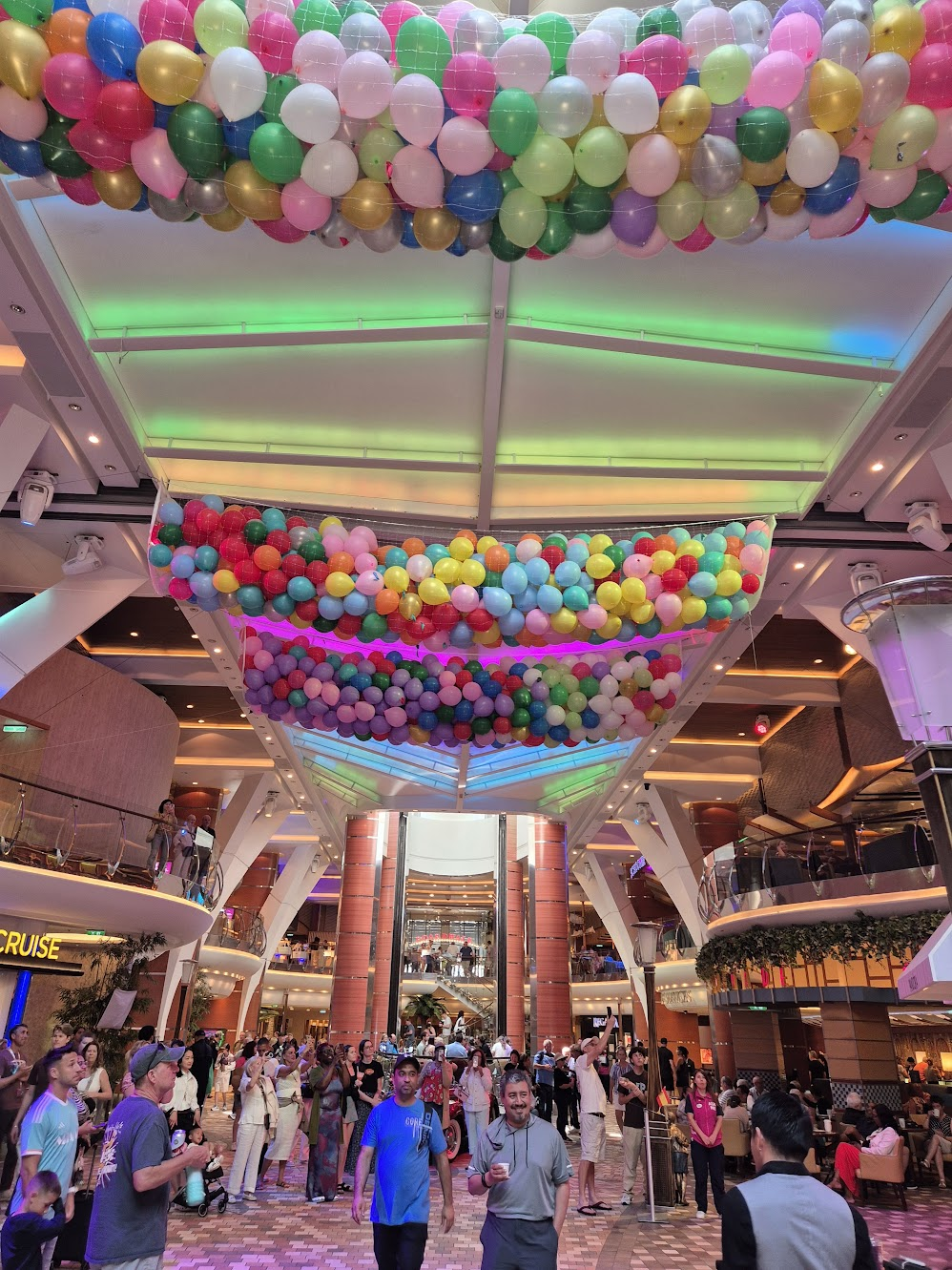 아래는 5층에서 진행된 환영파티 겸 아이들 댄스파티입니다. 13년전에 탔던 크루즈에는 은퇴한 듯 보이는 나이 많은 분들이 많았는데, 이번엔 여기서 보는 것처럼 젊은 분들이 많았습니다. (물론 나이 많은 분들을 위한 프로그램도 있습니다.) 이런 프로그램은 자유롭게 참가할 수 있는데, 가장 좋은 방법은 주변에 있는 레스토랑이나 바에 들어가 맥주 한잔 하면서 구경하는 게 가장 좋습니다. ㅎㅎ
