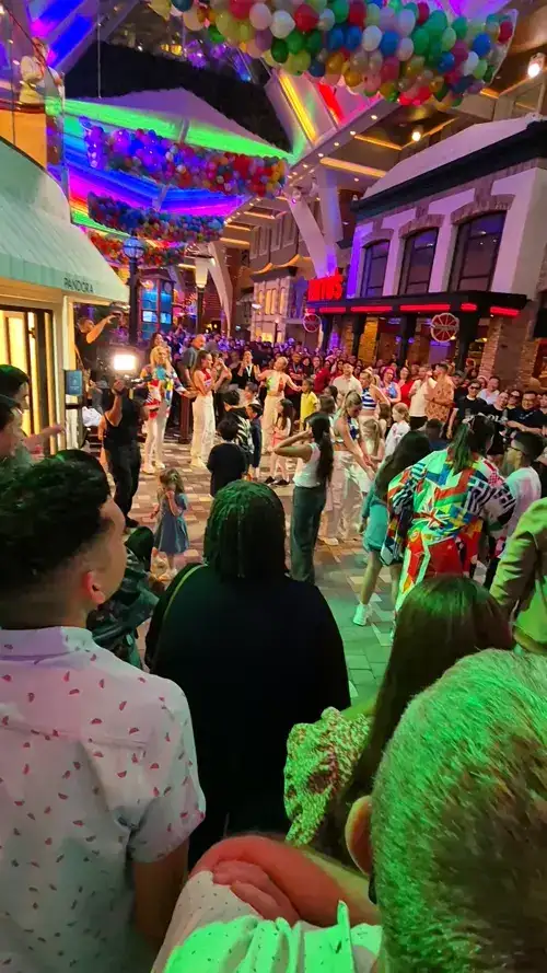 아래는 5층에서 진행된 환영파티 겸 아이들 댄스파티입니다. 13년전에 탔던 크루즈에는 은퇴한 듯 보이는 나이 많은 분들이 많았는데, 이번엔 여기서 보는 것처럼 젊은 분들이 많았습니다. (물론 나이 많은 분들을 위한 프로그램도 있습니다.) 이런 프로그램은 자유롭게 참가할 수 있는데, 가장 좋은 방법은 주변에 있는 레스토랑이나 바에 들어가 맥주 한잔 하면서 구경하는 게 가장 좋습니다. ㅎㅎ