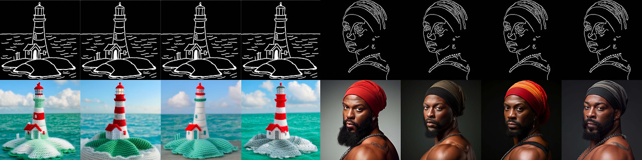 이러한 콘트롤넷은 동일한 노트북에서 사용될 수 있으며, 각 ContrelNet을 위한 config만 바꾸면 됩니다. 자세한 내용은 추론 가이드를 참고하세요.