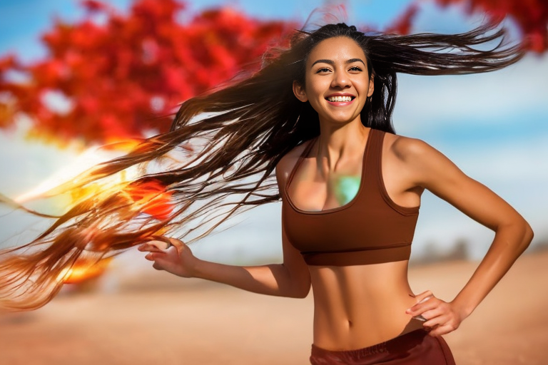 프롬프트 : half-body, a beautiful woman, brown eyes, running, smile, small breast