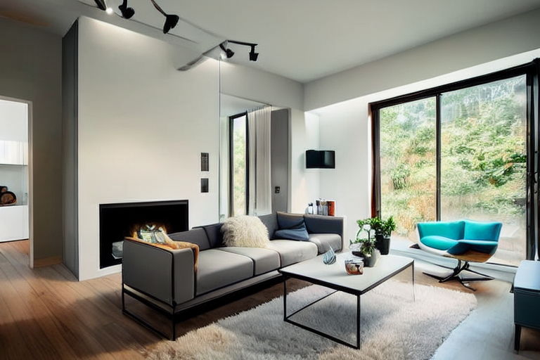 이 모델도 Shuffle 모델과 같이 형태는 사용하지 않고 색감만 사용하므로, 완전히 다른 이미지를 생성할 수 있습니다. 예를 들어 프롬프트를 "A modern living room"라고 입력하면 아래와 같은 이미지가 생성됩니다. 대략적으로 색감이 비슷함을 알 수 있습니다.