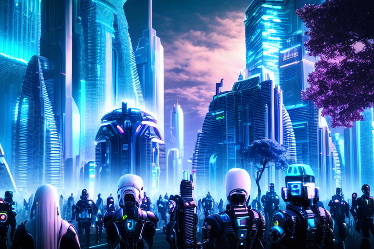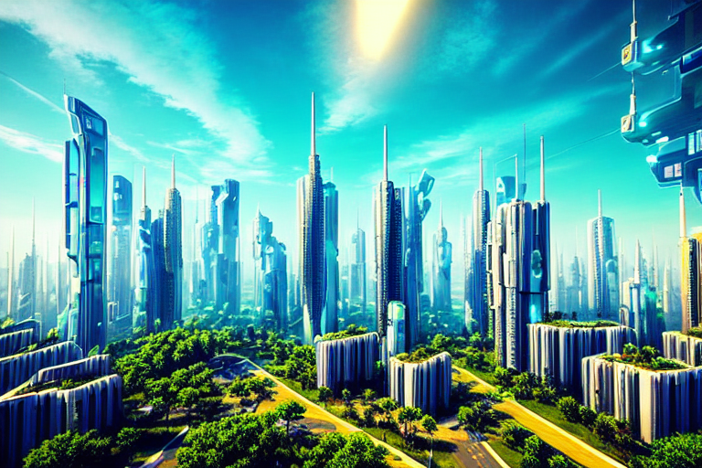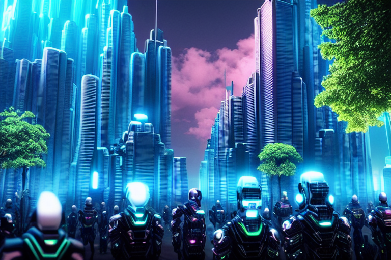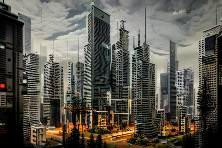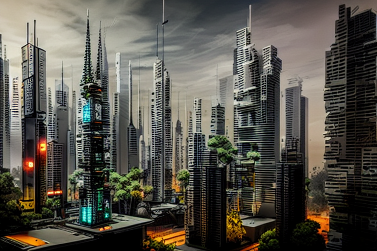 아래는 Ofade20k 전처리기를 적용한 결과입니다. 프롬프트는 "Futuristic city, tree, buildings, cyberpunk"입니다.