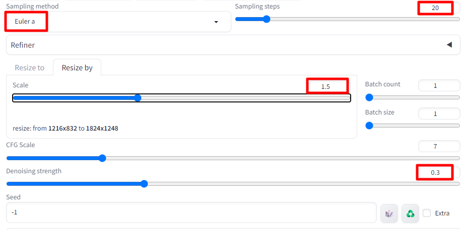 Stable Diffusion txt2img 페이지에 들어가서 아래와 같이 설정해 줍니다.