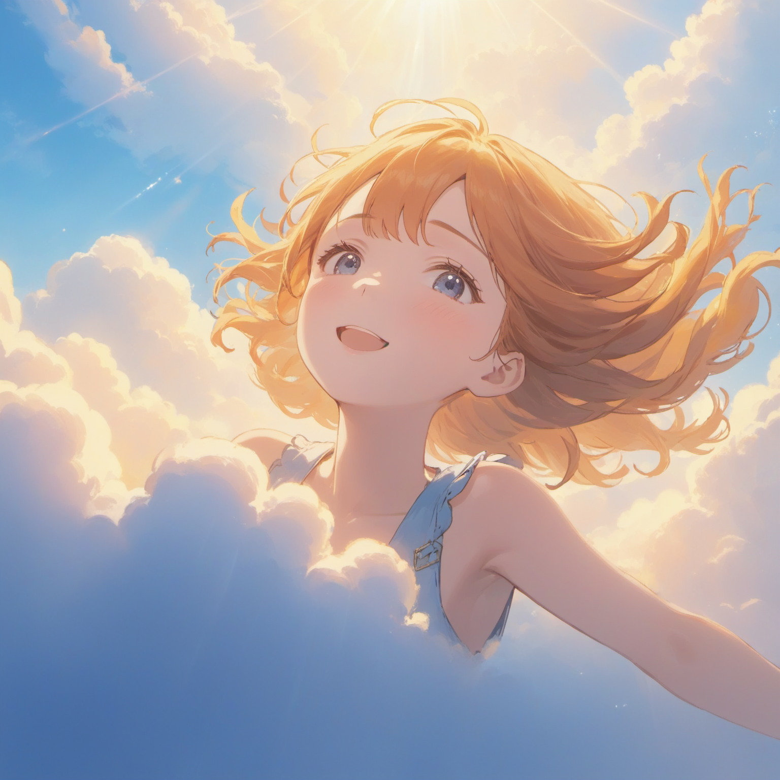프롬프트: 1girl, floating in the sky, cloud, (close-up:1.1), bright, happy, fun, soft lighting masterpiece, best quality, movie still