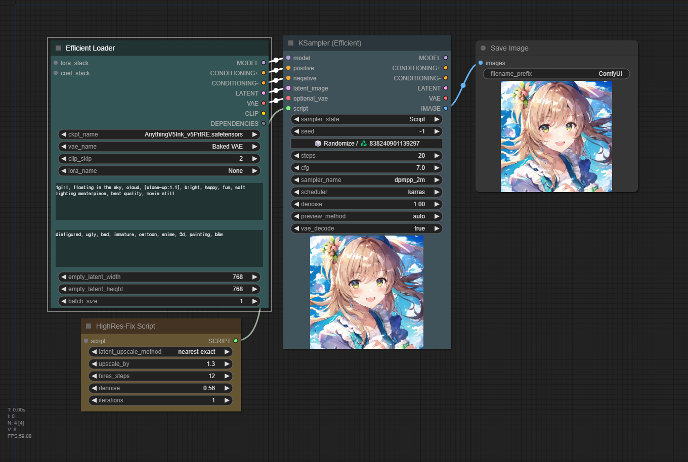 - Efficiency Nodes를 사용한 High Res. Fix 워크플로