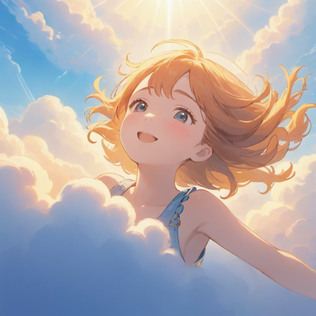 프롬프트: 1girl, floating in the sky, cloud, (close-up:1.1), bright, happy, fun, soft lighting masterpiece, best quality, movie still